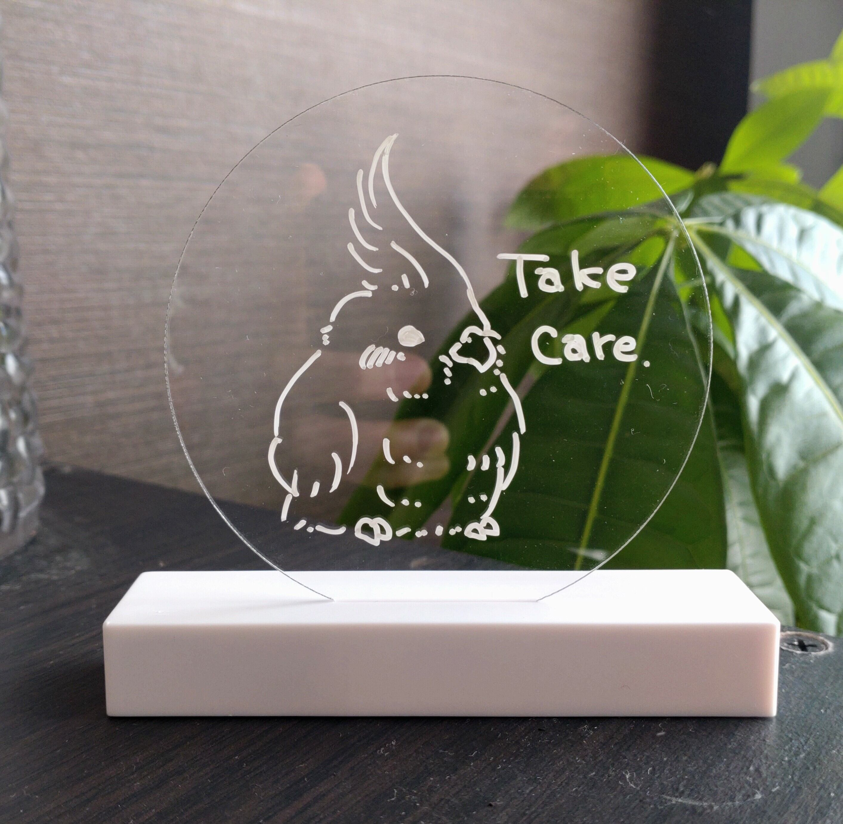 あたたかい光で照らすアクリルライトに、あなたのご家族のイッヌ・ネッコ・チュンを描きます。もちろんそれ以外の動物も、哺乳類・爬虫類・魚類などなんでも描きます。